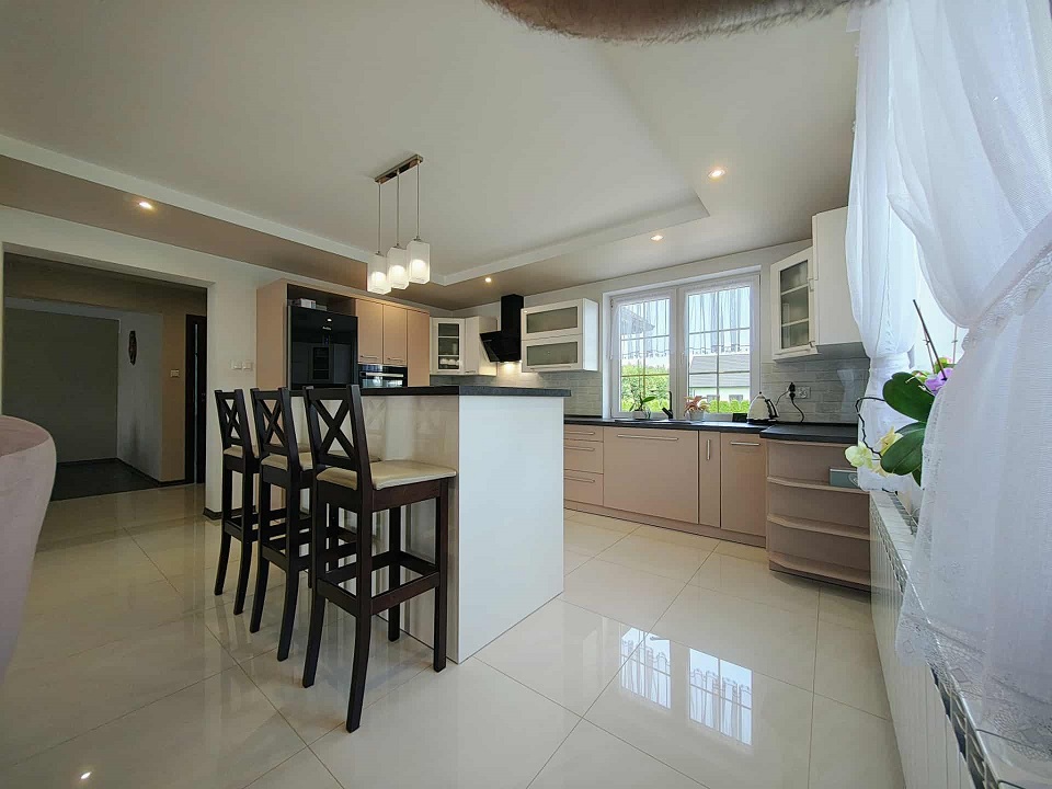 Do sprzedania w pełni wyposażony dom z 2015 roku, wolnostojący z poddaszem użytkowym o powierzchni 145m2 położony na działce 21 ar.