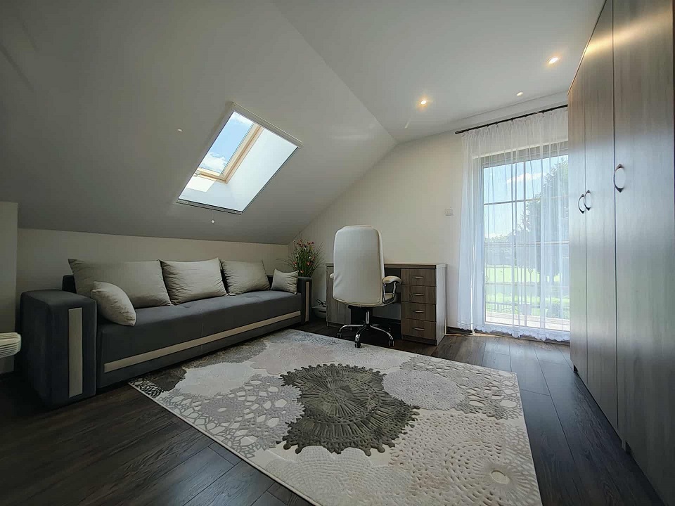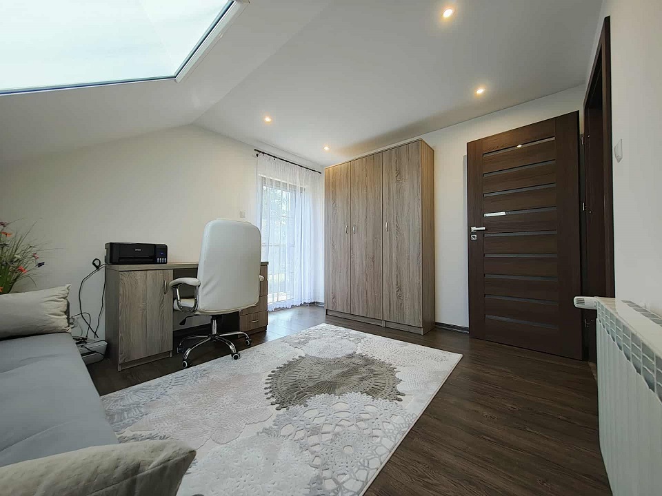 Poddasze - 3 sypialnie (w tym główna sypialnia z wyjściem na balkon), łazienka.