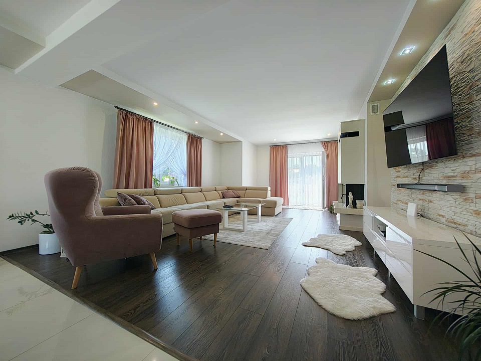 Dom jest funkcjonalny i zadbany, sprzedawany łącznie z meblami i całym osprzętem AGD i RTV.
