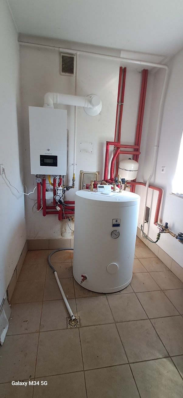 W kotłowni nowy piec do C.O z zasobnikiem wody.
