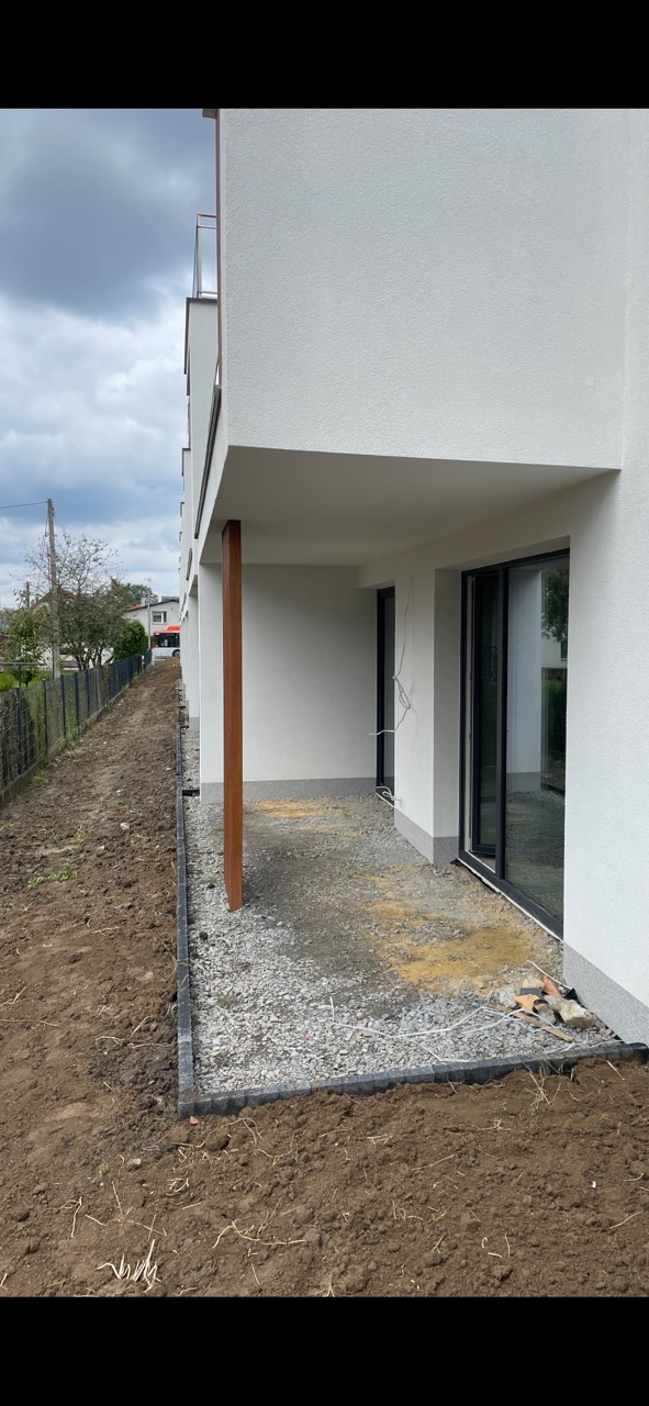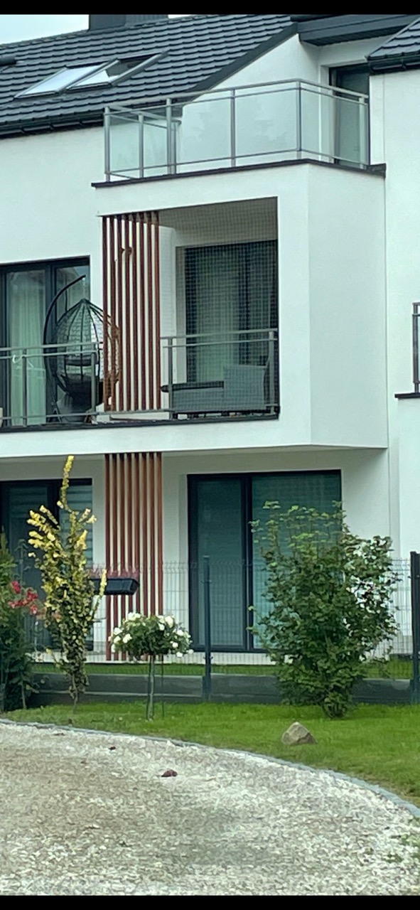 Budynek w zabudowie szeregowej, dwulokalowej, z 2025 roku, w trakcie oddawania do użytkowania.
